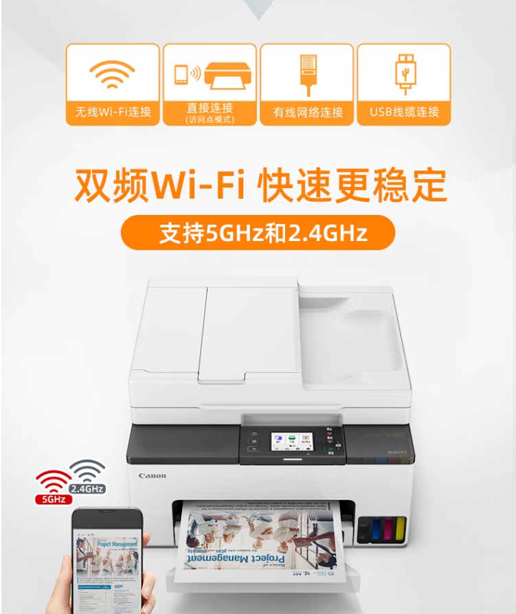 ☆多协议连接方式:支持Wi-Fi、USB有线及佳能云打印小程序,满足PC端、移动端及远程办公的无线直连需求。